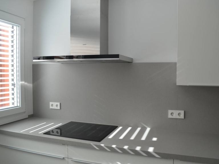 Cocina con cristal serigrafiado